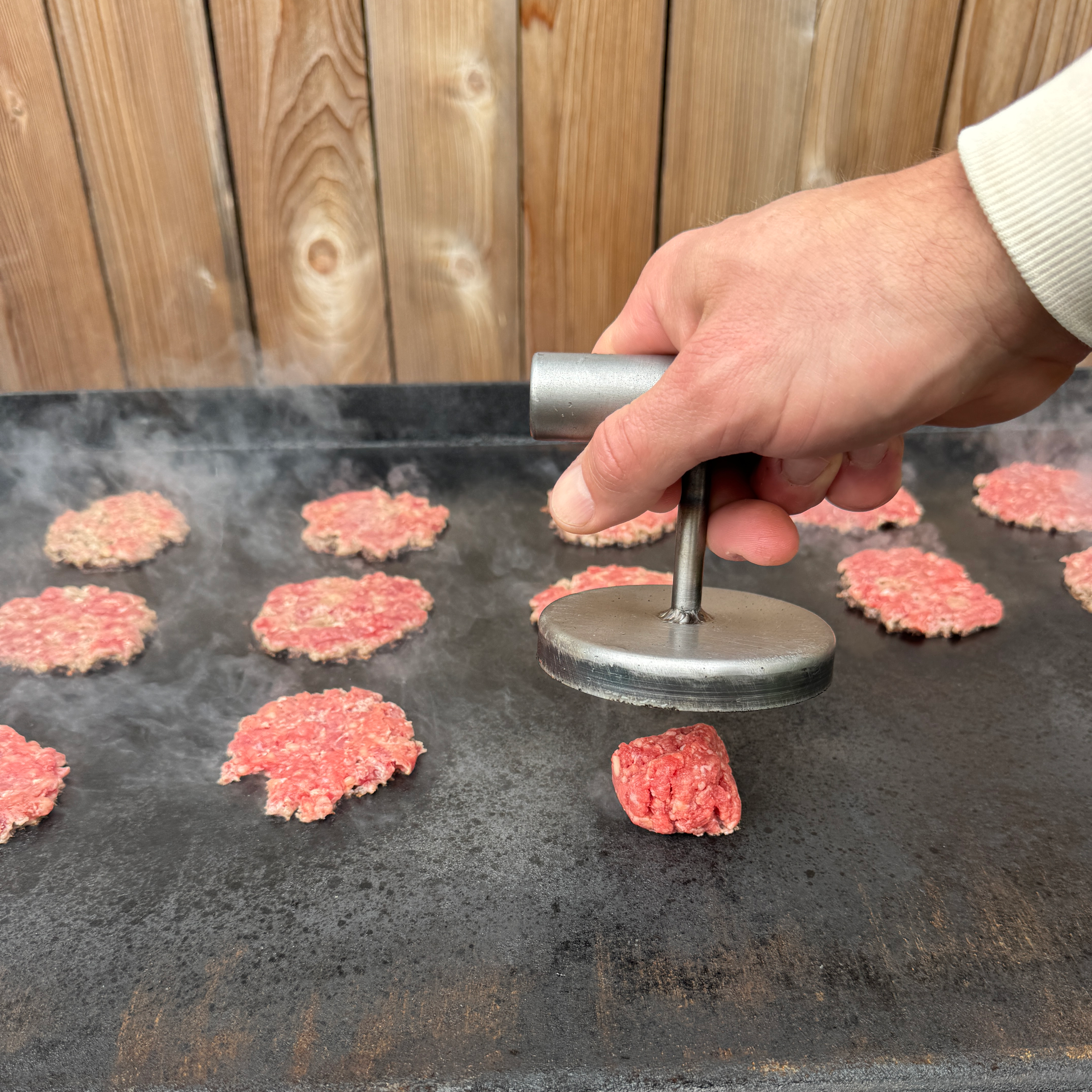 Stainless Steel BEEFY SMASH $180.00 Sold out 3.5 inch Kings Hawaiian SLIDER SMASH mild steel $90.00 4.25 inch SLIDER SMASH mild steel $100.00 BEEFY SMASH holographic stickers $5.00